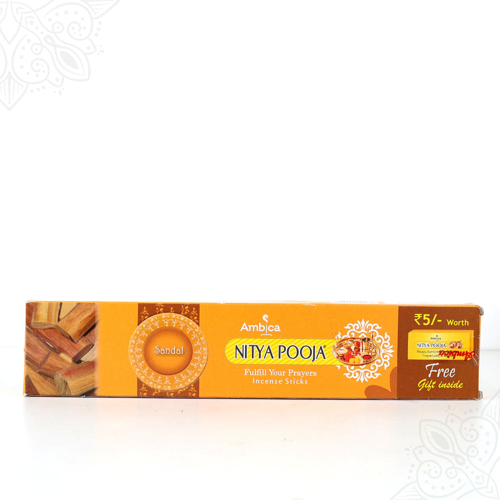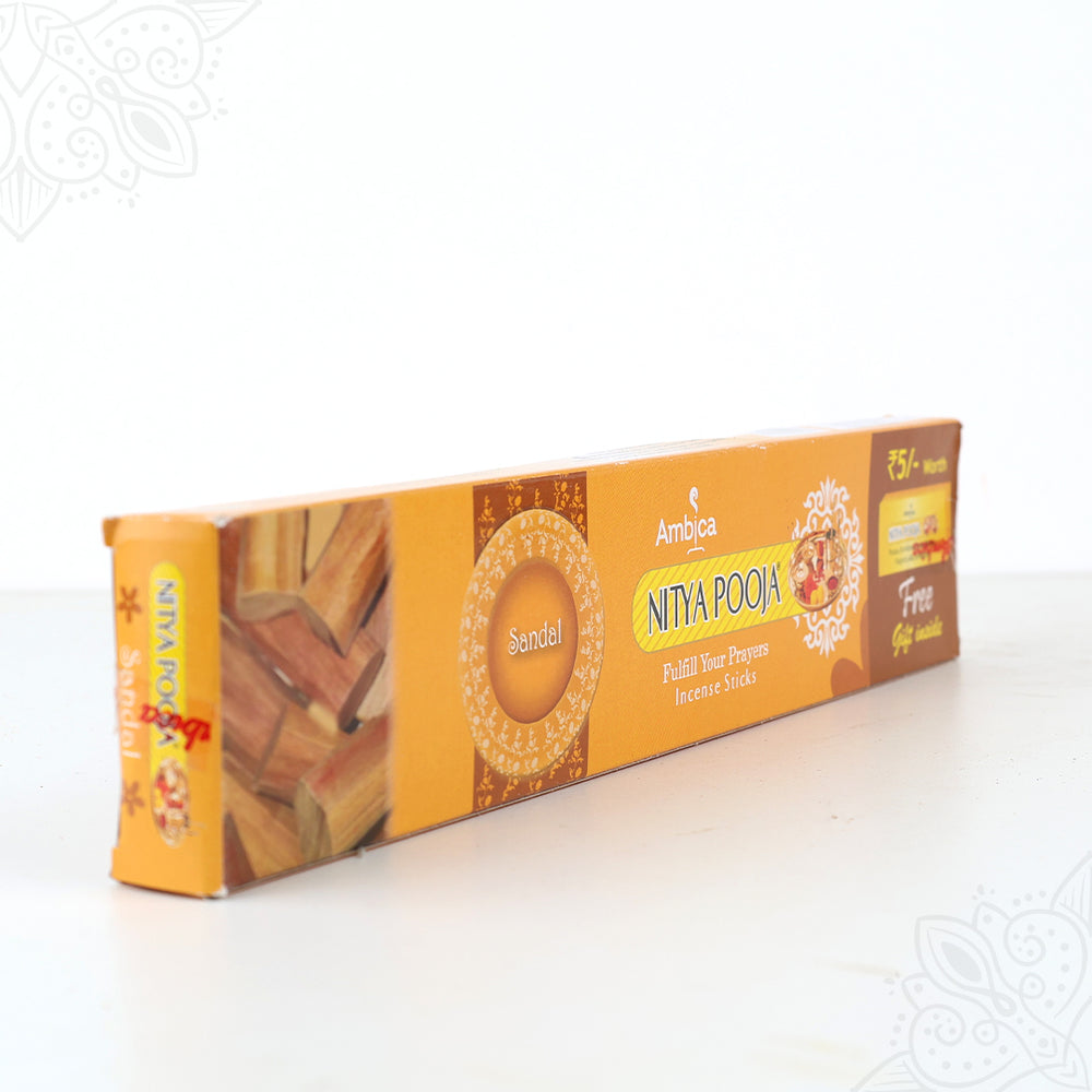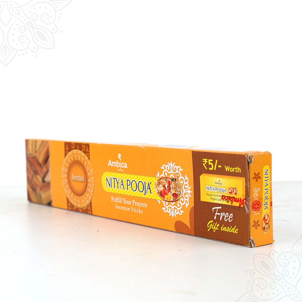 Ambica Nithya Puja Agarbathi (Agarbatti) are traditional incense sticks made from natural herbal ingredients. Used in home puja, temple puja, homa, and meditation rituals to create a fragrant, purifying smell.