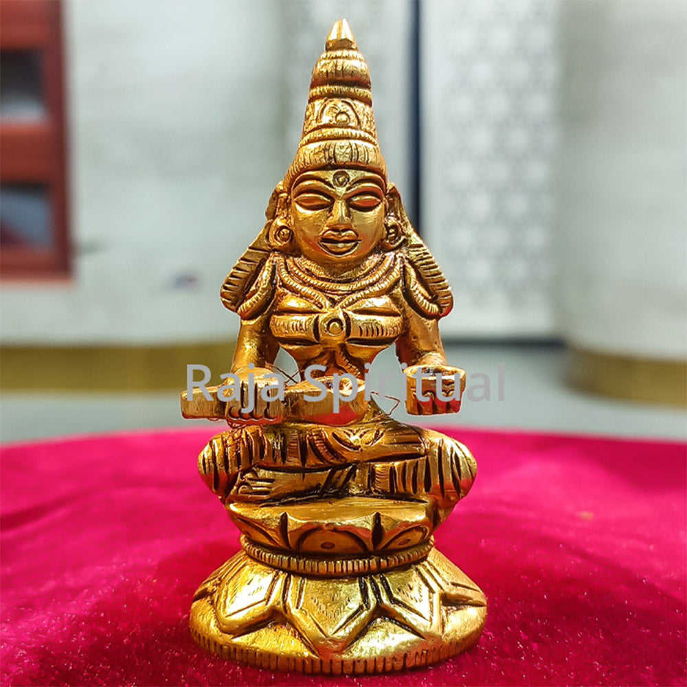 Sri Annapoorani Brass Idol – 3 Inches, finely handcrafted in pure pithalai, representing nourishment, abundance, and divine prosperity. Perfect for home puja rooms to invite blessings of food, happiness, and wealth.