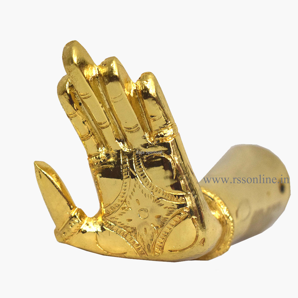 Ashtam with Abayam No. 1 – a brass ayudham specially crafted for deity alankaram, mainly used while preparing newly made Swamy idol or during festival decorations. This No. 1 size Abayam is designed for 1 ft Swamy and fits perfectly into the deity’s hand, giving a complete and divine appearance.