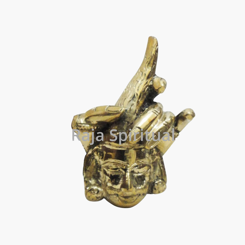 Ashtam - Arakkan Thalai No. 3 – a brass ayudham specially crafted for deity alankaram, symbolizing authority, protection, and divine vigilance. Designed for 3 ft Swamy, this No. 3 size Arakkan Thalai is ideal for poojas, festivals, and temple rituals, enhancing the sacred and commanding presence of the deity.