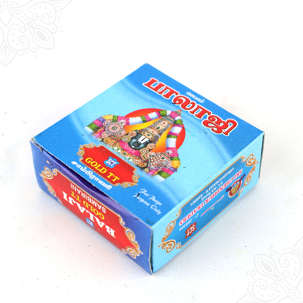 Balaji Sambrani Katti is a compressed block made from powdered sambrani. It is used in Hindu rituals and pujas to create fragrant smoke and purify sacred spaces. It is an instant sambrani pack.