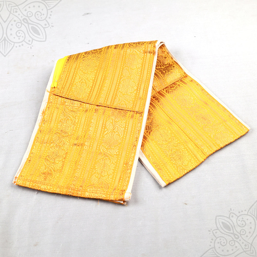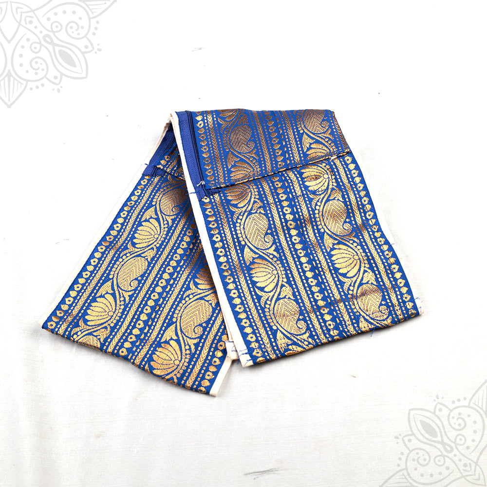Belt Zarikai 8 inches – a traditional decorative waist belt featuring rich Zarikai (zari) work with an elegant 8- inches width. Available in Violet, Green, Yellow, Blue, and Red, this belt is ideal for temple rituals, pooja, and festive occasions, adding a grand and auspicious touch to traditional attire.