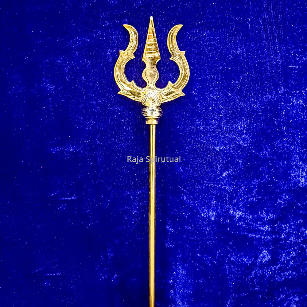 Brass Pattai Sulam – a finely crafted trident made from high-quality brass, representing the sacred weapon of Amman. Ideal for puja rooms, temples, or as a spiritual gift, this trident symbolizes protection, valor, and divine energy.