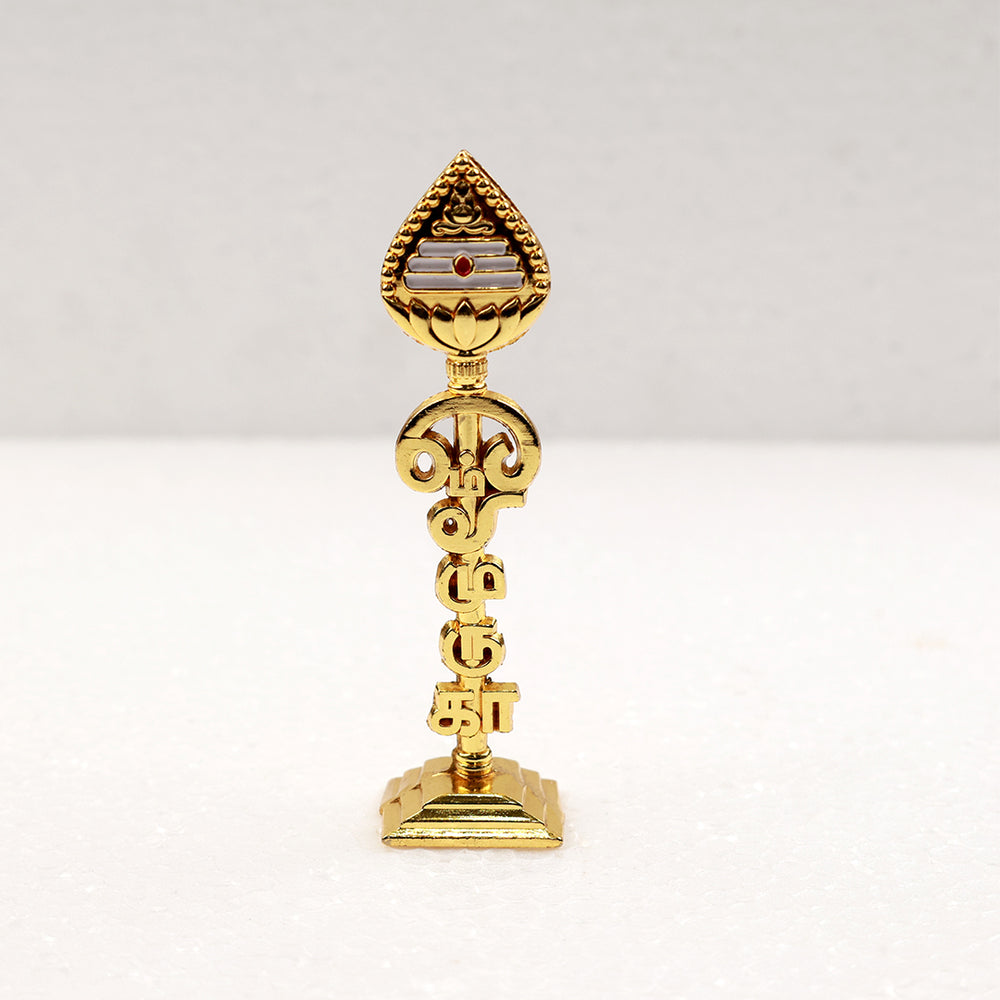 Gold Murugar Om with Vel - a beautifully crafted idol combining the sacred Om symbol with Lord Murugar's Vel in a stunning gold finish. Perfect for puja rooms, altars, and showcases, this idol represents devotion, divine energy, and spiritual elegance.