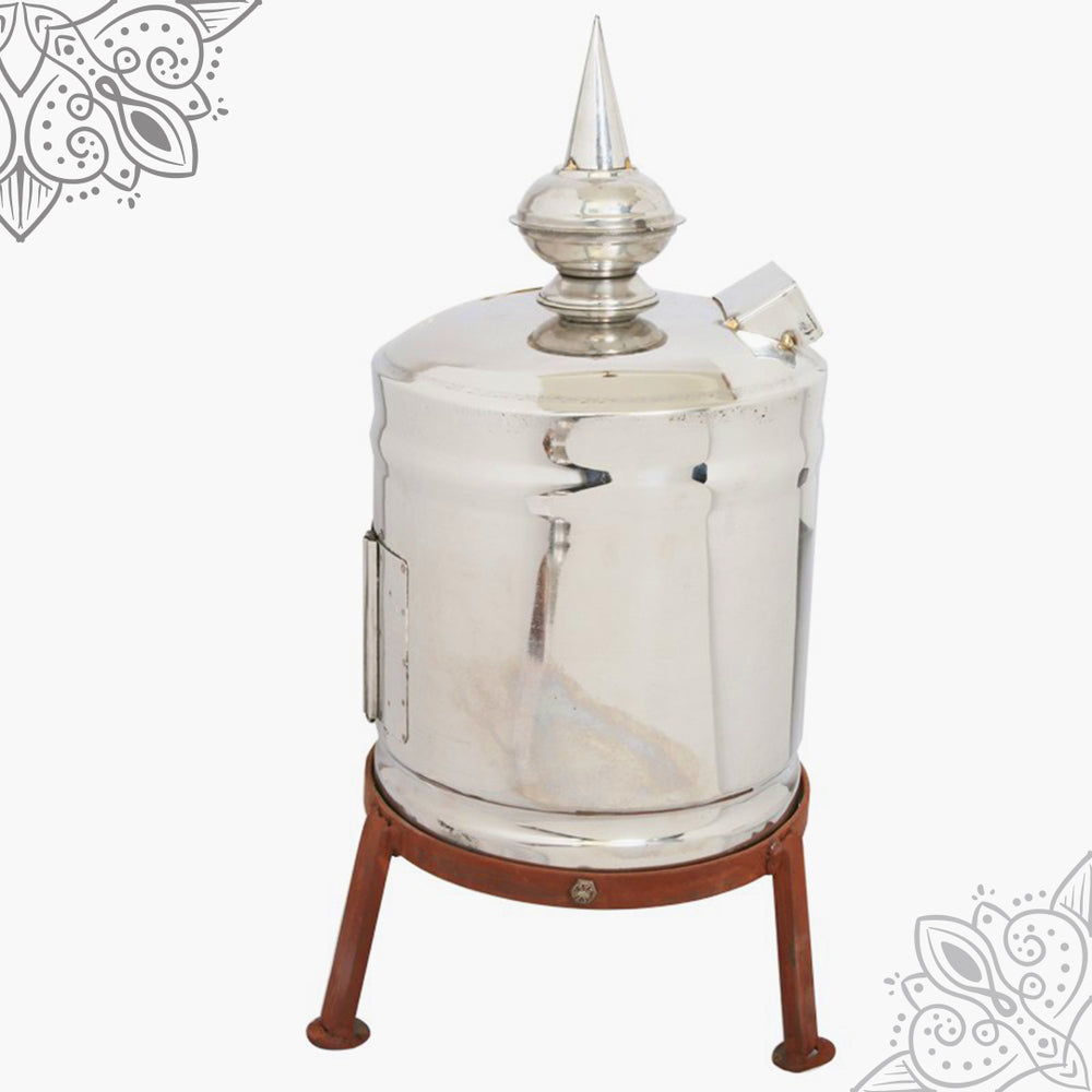 Temple Donation Box (Round Type) (also called Hundiyal or Undiyal) is a beautifully crafted collection box designed for temples, home pujas, and religious spaces. It is lightweight, easy to hold, and comes with a secure lock for collecting donations safely.