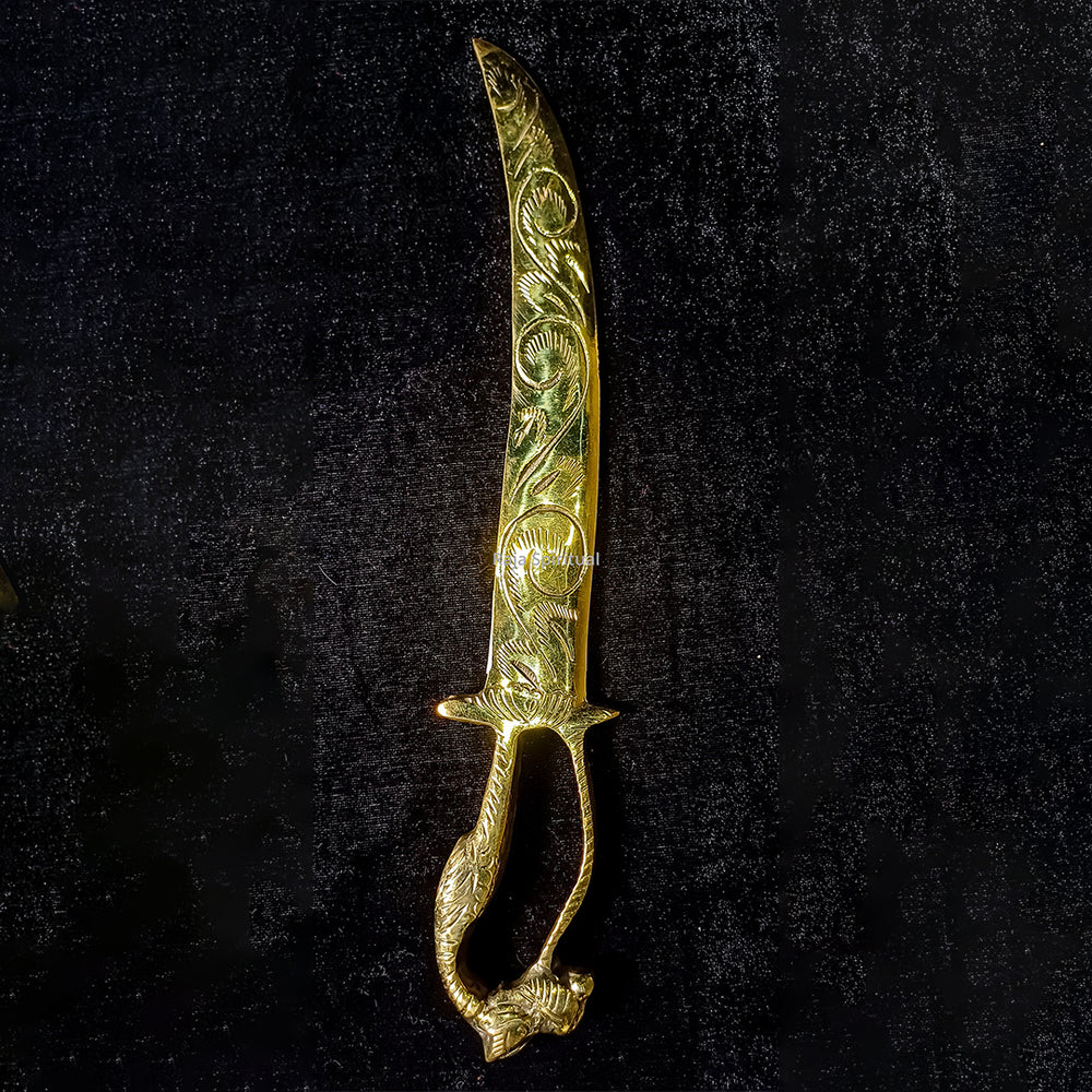 Kathi – a traditional brass ayudham used for Amman, Mariyamman, and other goddess alankarams. Crafted in solid brass with a sharp, symbolic blade design, this kathi is placed in the deity’s hand during pooja, festivals, and special alankaram rituals. Available in multiple sizes for both home temples and large sannidhis.