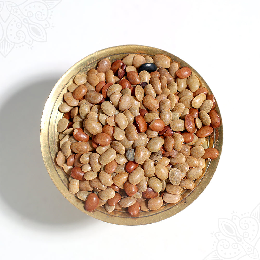 Kollu (Horse Gram) is a traditional pulse used in Hindu rituals and homa ceremonies. It is known for its strength-giving properties and symbolizes power, endurance, and good health. In spiritual practices, it is offered to deities to invoke blessings of vitality and protection.