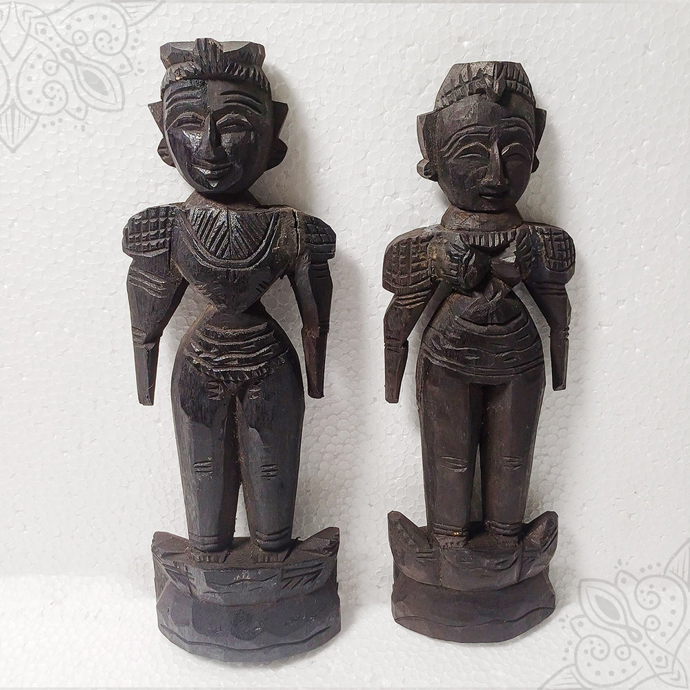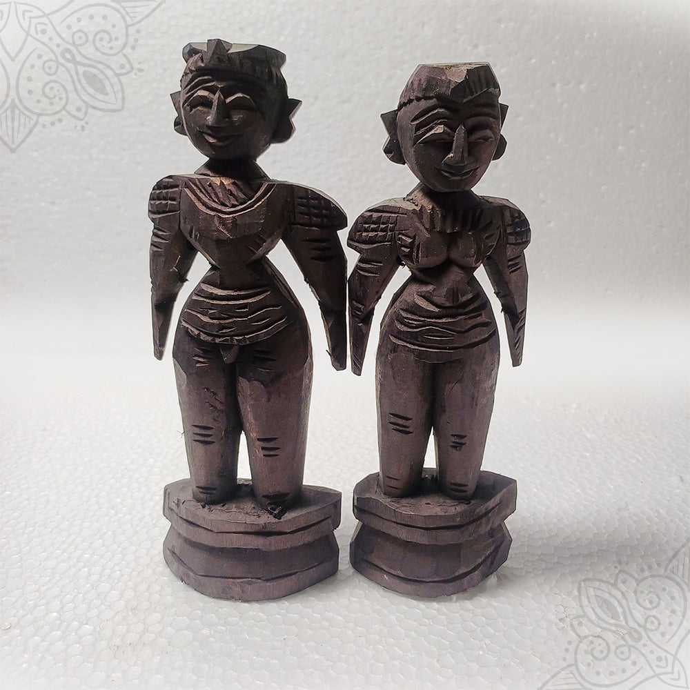 Marapachi Bommai - a pair of traditional wooden dolls crafted from sacred wood, standing tall. These dolls represent a male and female couple and are widely used for Navaratri Golu, home puja rooms, and traditional spiritual d?cor. They symbolize heritage, culture, and divine grace in Hindu households.