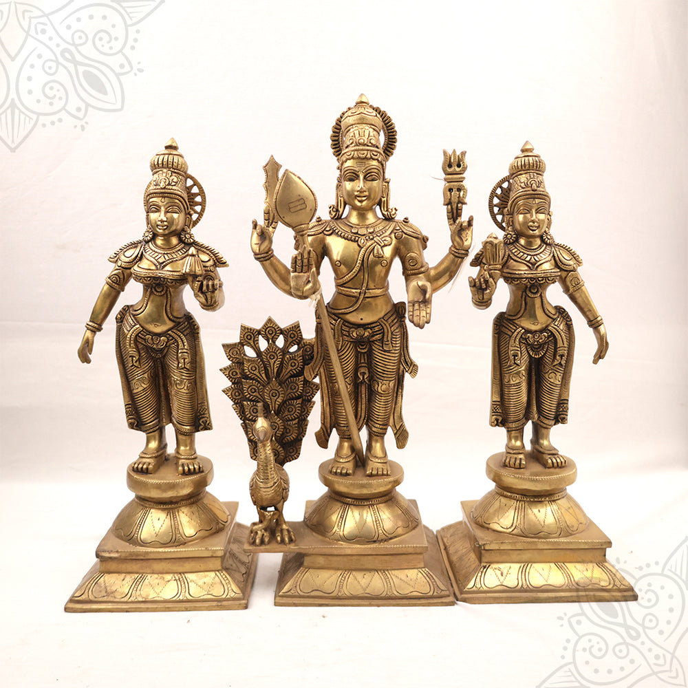 Murugar Set - a beautifully crafted 18.5-inch statue set of Lord Murugar, ideal for temples, large home puja rooms, and spiritual decor. This majestic set embodies courage, wisdom, and divine protection, bestowing powerful blessings and positive energy upon the worship space.