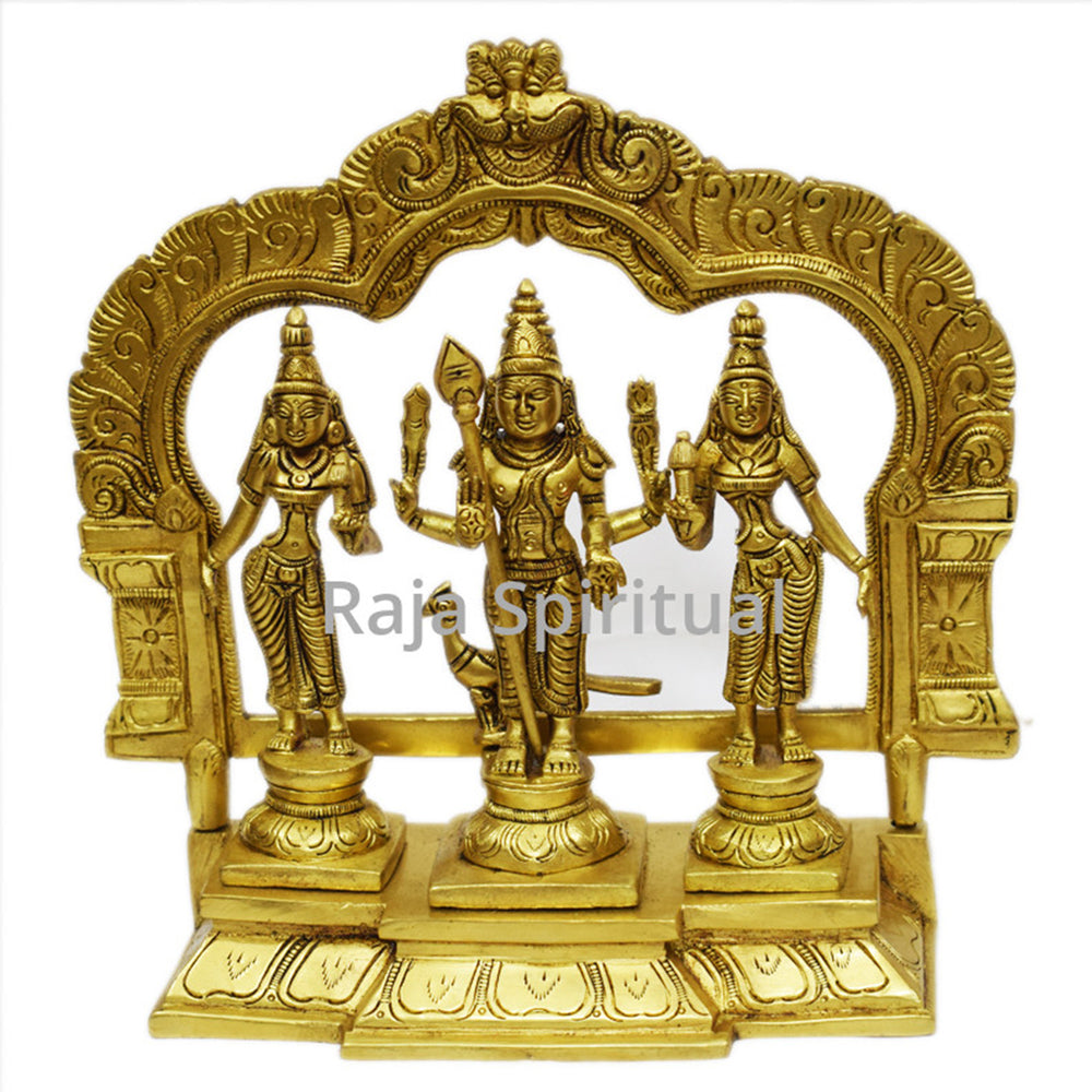 Lord Murugar with Valli and Deivanai Brass Idol – 5 Inch, finely crafted in pithalai, symbolizes divine power, wisdom, and family unity. This sacred set is one of the most powerful divine combinations, radiating strength, love, and protection, perfect for home puja rooms.