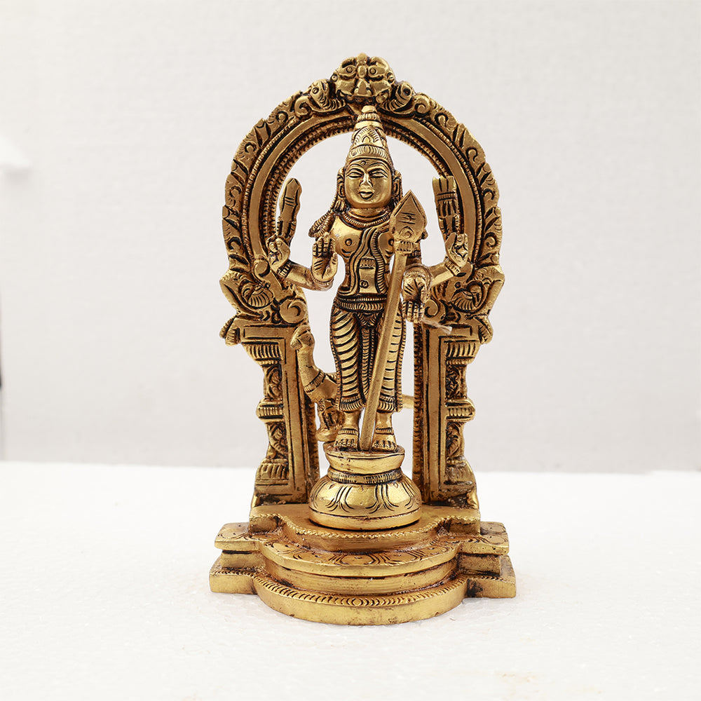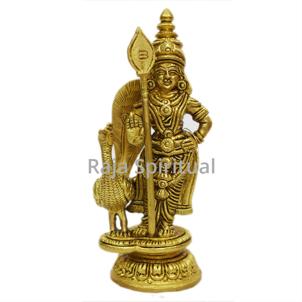 Brass Murugar Idol - beautifully crafted brass statues of Lord Murugar, available in 9.5 and 12-inch sizes. Ideal for home puja rooms, temples, and spiritual decor, these idols represent courage, devotion, and divine protection, bringing blessings and positive energy to your household.