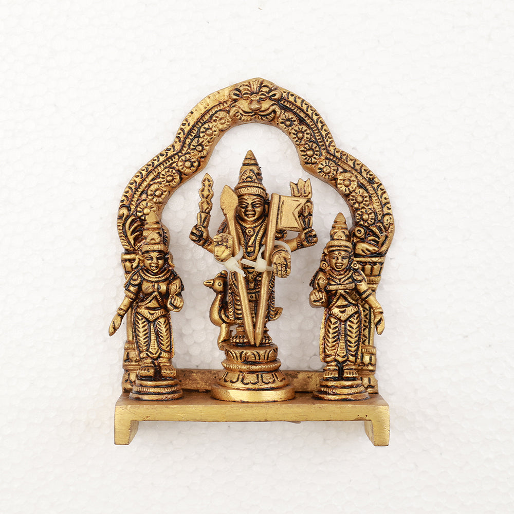 Brass Murugar with Valli & Deivanai - a beautifully crafted brass idol depicting Lord Murugar along with His divine consorts Valli and Deivanai. Representing divine love, strength, and spiritual harmony, this traditional idol is ideal for puja rooms, home altars, and showcases. Available in both Small and Big sizes to suit different devotional spaces.
