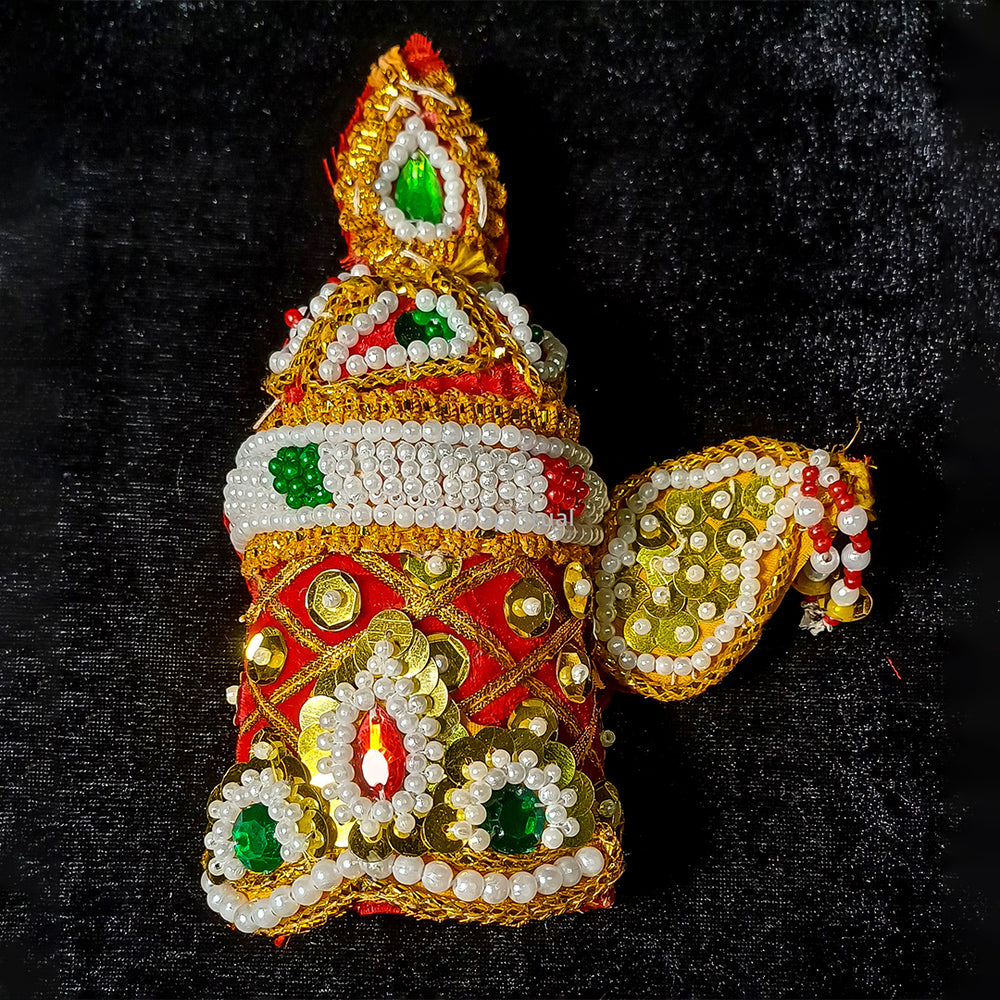 Muthangi Giridam – Raja, a cloth-based designer crown crafted with high-quality fabric, beads, and decorative stones. Available in 2.5 inch and 3.5 inch sizes, this Raja Giridam is designed to adorn the deity’s head during alankaram, providing a majestic, royal, and complete look to the idol in homes and temples.