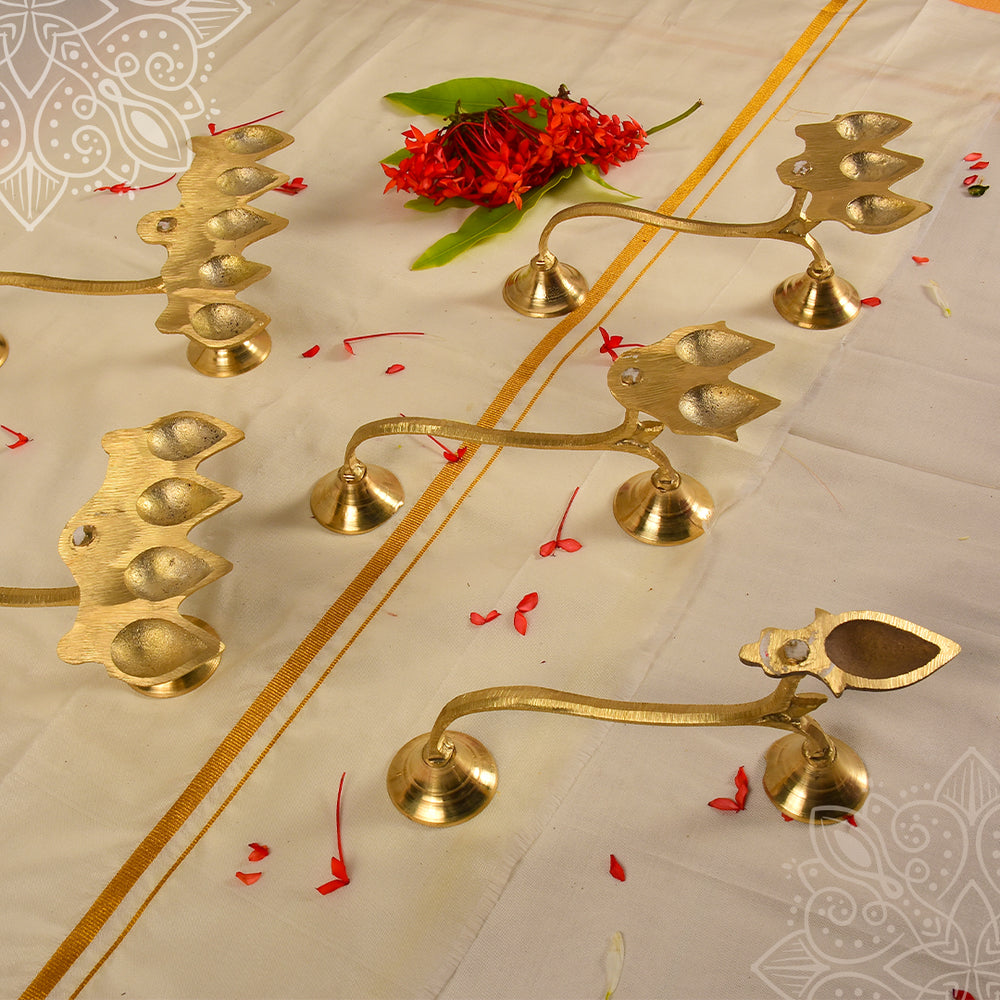Pancha Aarathi Set is a collection of five sacred lamps designed for temple & home puja and homa rituals, allowing devotees to offer light and devotion to multiple deities simultaneously, creating a spiritually uplifting atmosphere.