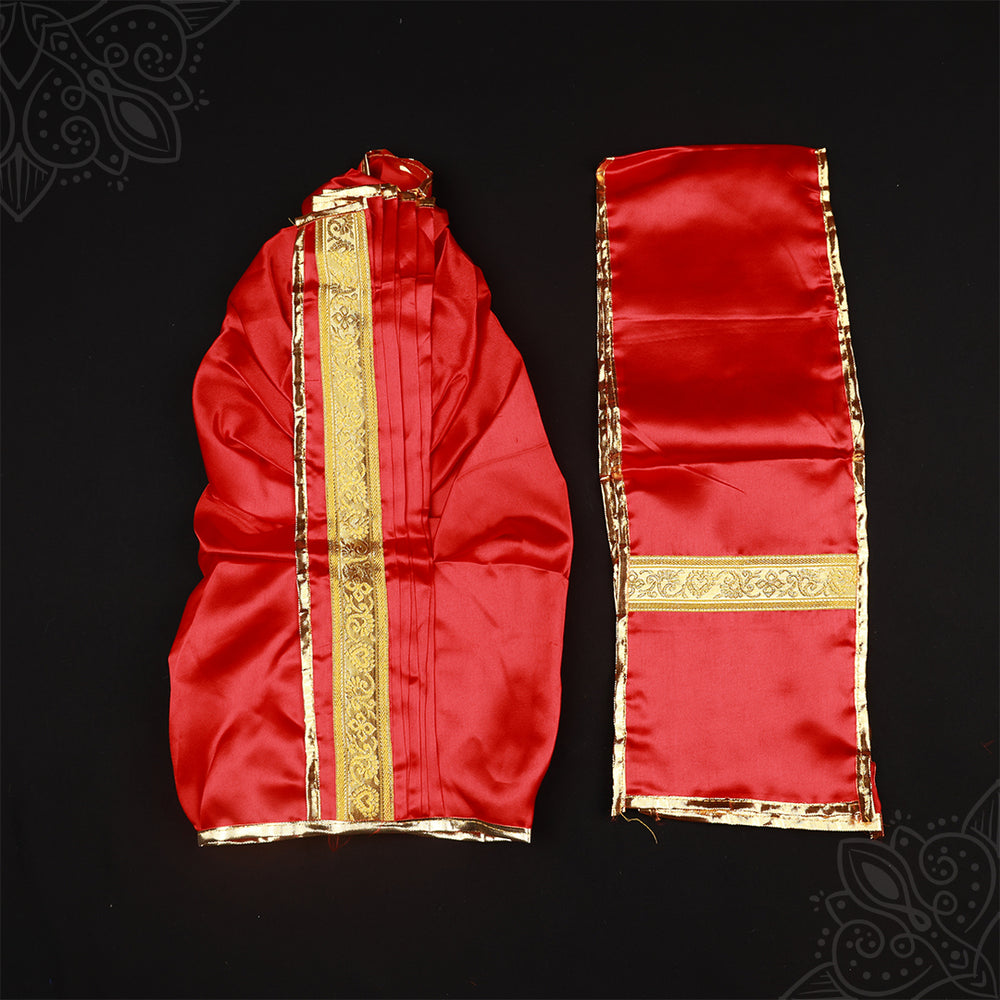 Panchakatcham 18 Inch – is a readymade traditional attire used for decorating Hindu deities. Panchakatcham refers to a ready-to-wear dhothi and thundu set specially designed for Gods such as Vinayagar, Murugar, Perumal, Sivan, Krishnar, Bairavar, and other deities. Made with plain satin cloth and finished with an elegant golden border look, this Panchakatcham enhances the divine beauty of idols during pooja and festivals.