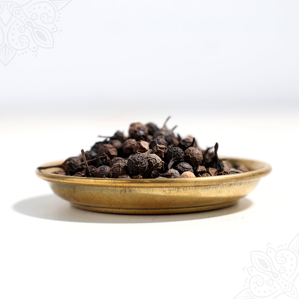 Pepper (Milagu) is a sacred spice used in home puja, temple puja, and homa/havan rituals to purify offerings and enhance the sanctity of the sacred fire.