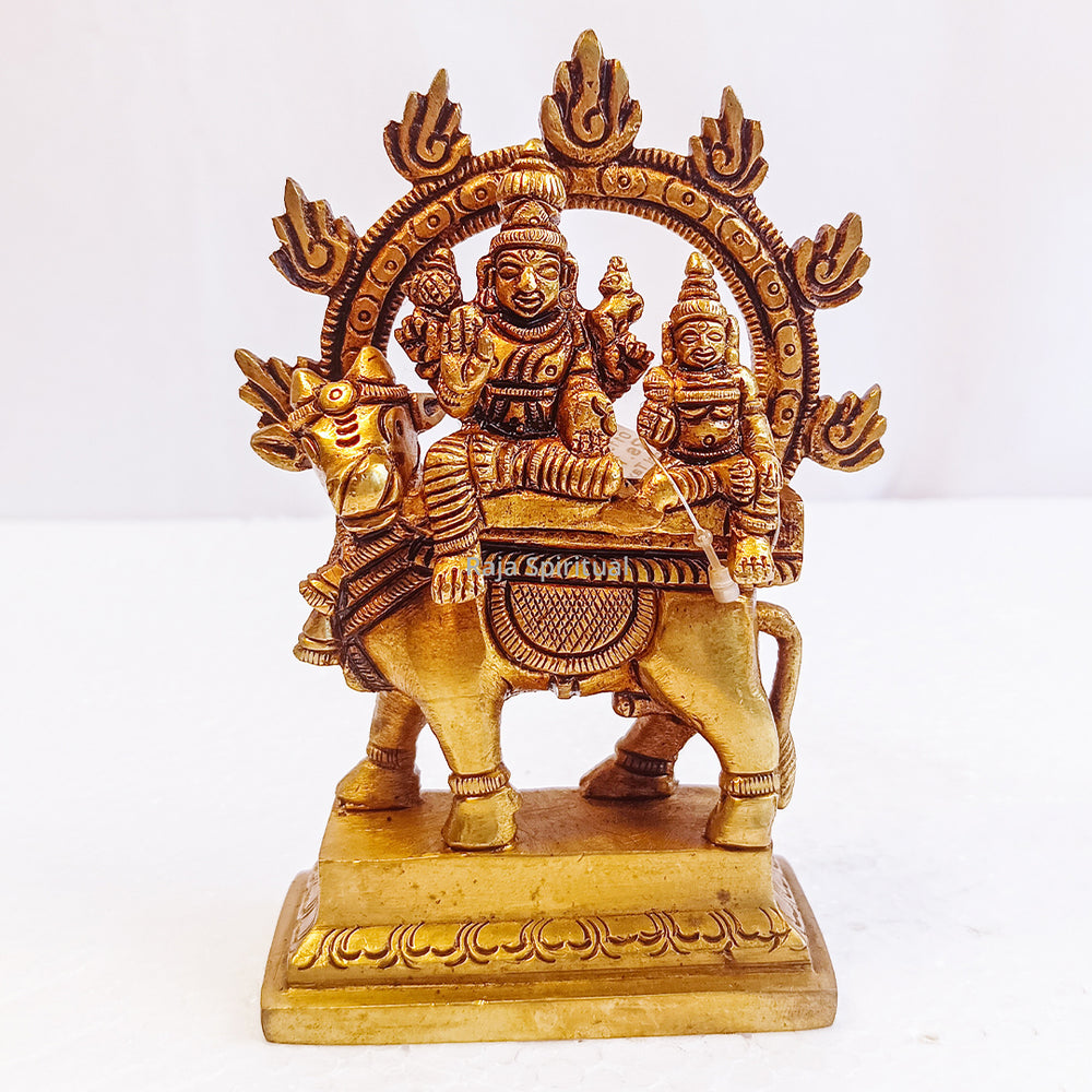 Pradhosha Moorthi with Arch Brass Idol – 5 Inch, finely crafted in pure pithalai, represents Lord Shiva and Goddess Parvati in the sacred Pradosham form. Ideal for home pooja rooms, this idol radiates divine grace, harmony, and auspicious vibrations.