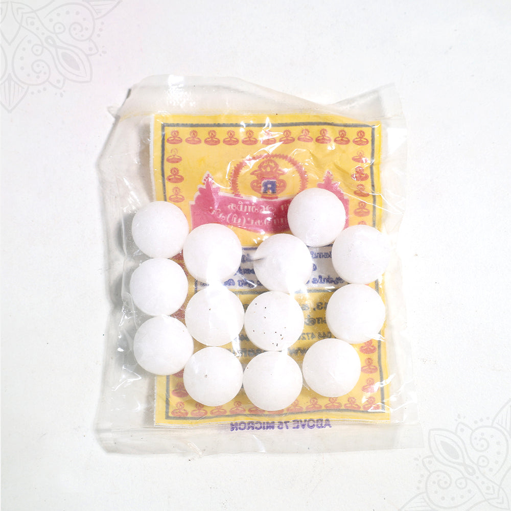 Rasa Karpooram, also known as Edible Camphor, is a natural crystalline substance with a strong, refreshing aroma. It is used in temples, homes, and traditional households for its purifying and aromatic qualities. Apart from its sacred use, it is commonly placed in wardrobes and storage spaces to protect clothes and valuables from insects.