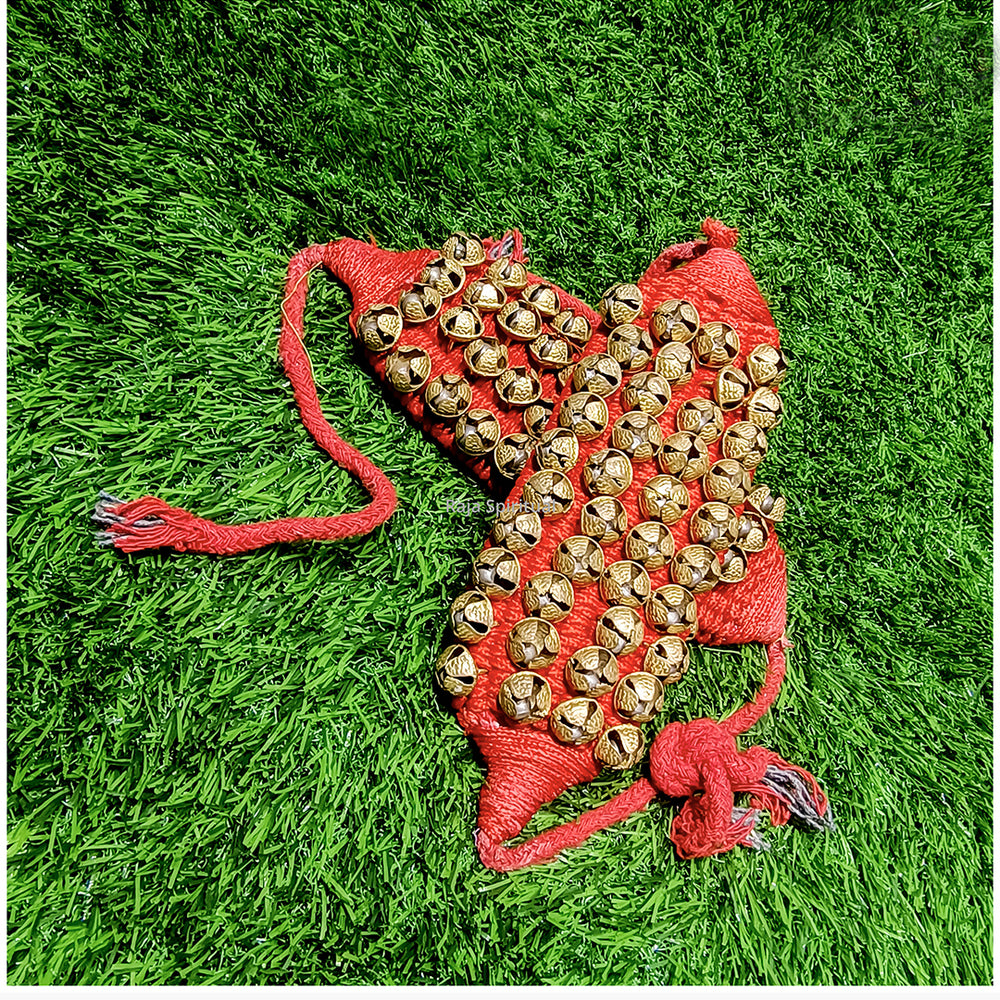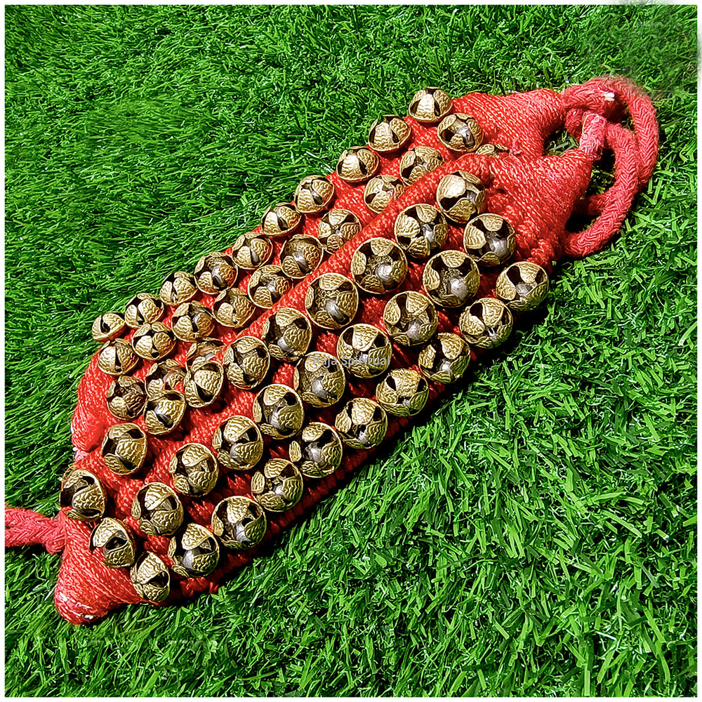 Salangai – traditional ankle bells used in classical dance and temple rituals. Crafted with high-quality metal bells attached to a red cloth base, available in multiple line configurations for different sound intensity and aesthetics.