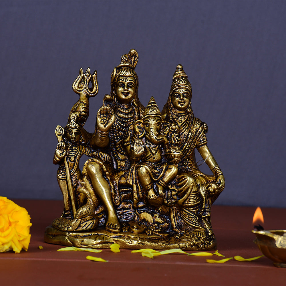 Sivan Family Brass Idol – 3.5 Inch, beautifully crafted in pure pithalai, depicts Lord Shiva, Goddess Parvati, and Lord Murugan together as a divine and harmonious family. Ideal for home pooja rooms, this idol brings unity, peace, and auspicious blessings.