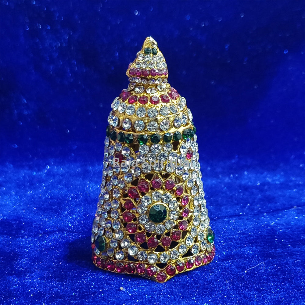 Stone Giridam – Full Size, crafted on a metal-like sturdy base and fully adorned with decorative stones. This crown is designed to create a majestic and royal appearance for idol of all sizes, ranging from small 2 inch and 3 inch idol at home to larger 2 ft and 3 ft Swamy idol in temples. Carefully placed large and small stones give a rich, vibrant, and divine look, making the deity’s alankaram truly spectacular.
