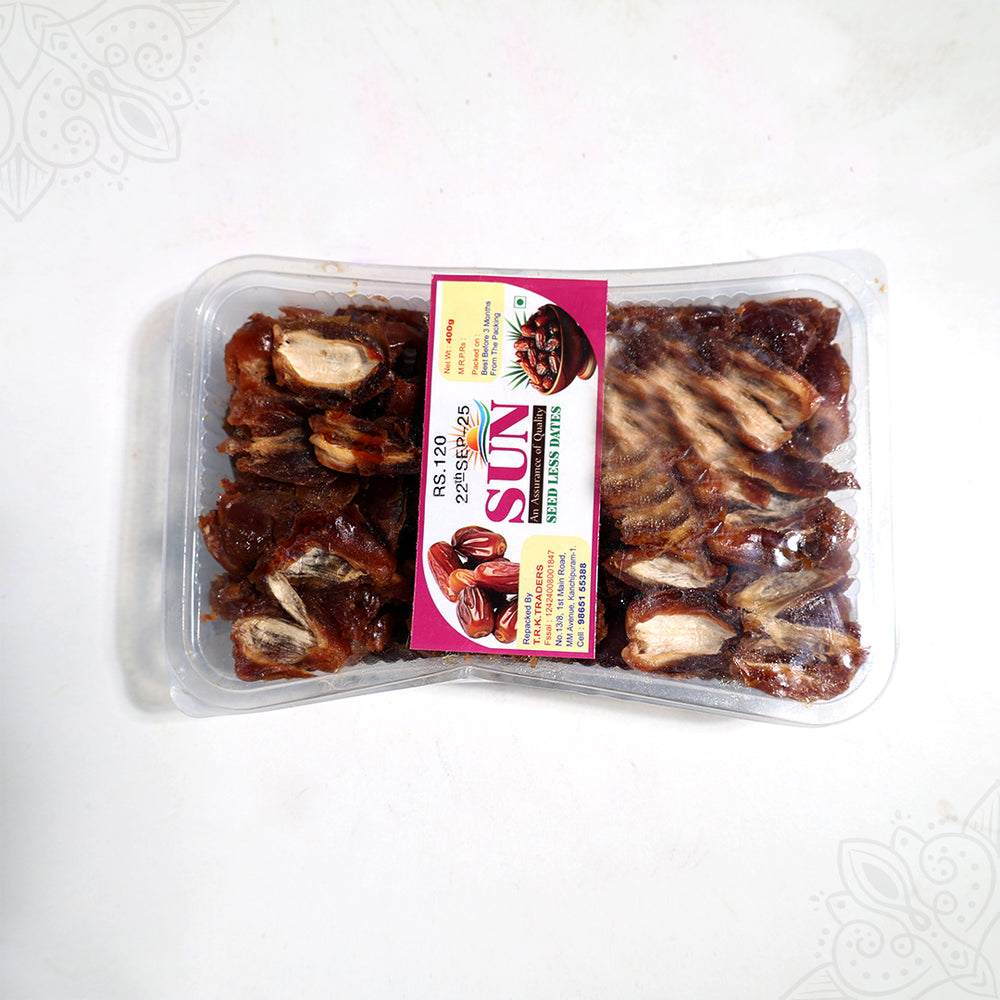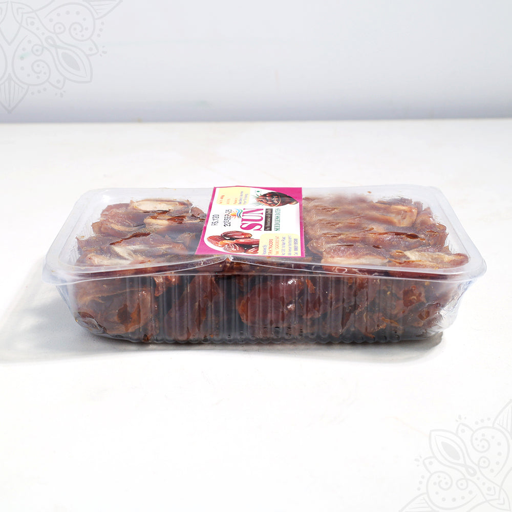 Sun Dates are naturally sun-dried dates with reduced moisture, offering a chewy texture and concentrated sweetness. They are nutrient-dense, long-lasting, and commonly used in diets, traditional recipes, and Ayurvedic wellness.