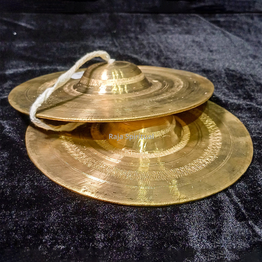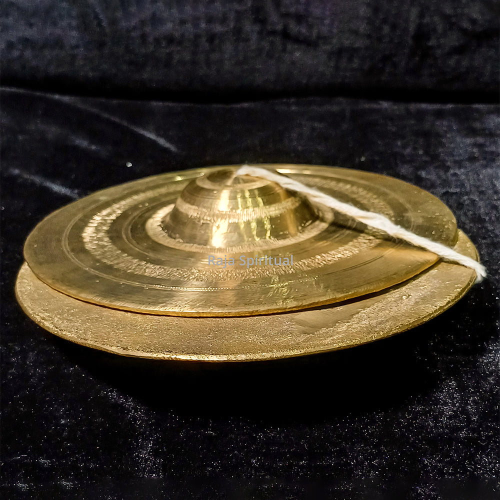 Thalam – a traditional brass percussion instrument used in temples and home puja to maintain rhythm during devotional songs and rituals. Crafted from high-quality brass, it produces clear, resonant sounds that enhance the spiritual atmosphere.