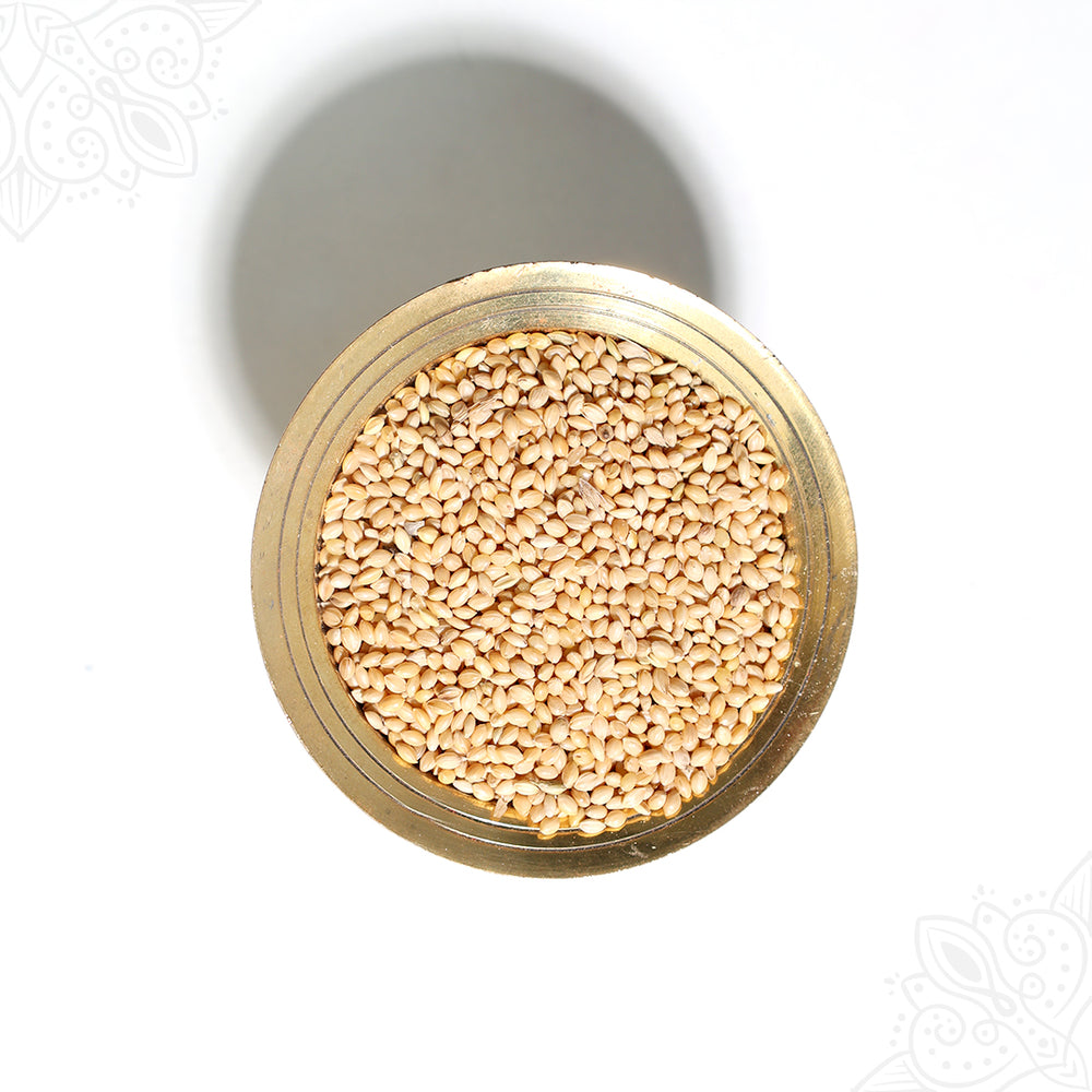 Thinai, also known as Foxtail Millet, is one of the oldest cultivated grains in India and holds spiritual and cultural significance. It symbolizes prosperity, nourishment, and devotion, often used in traditional rituals and offerings to deities.
