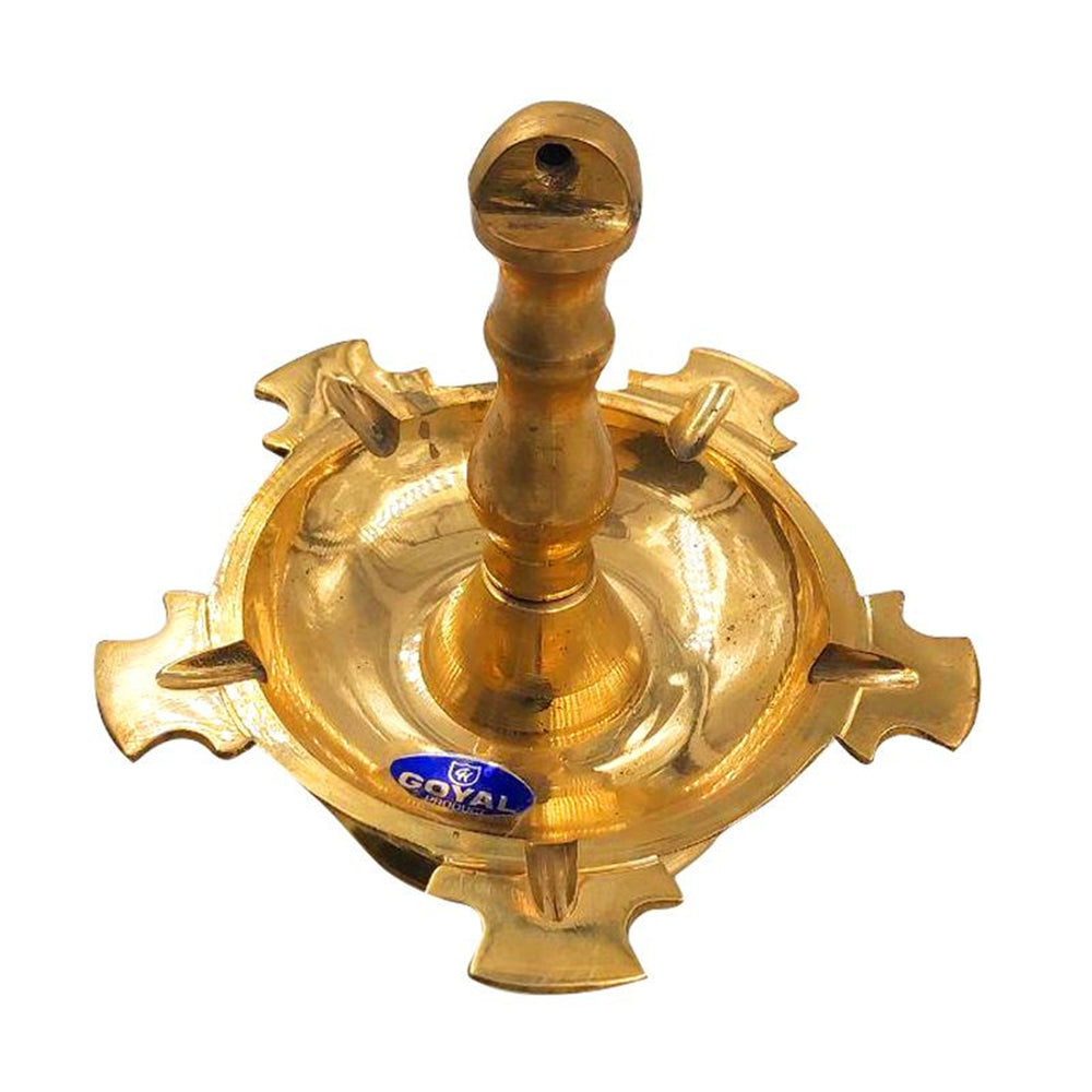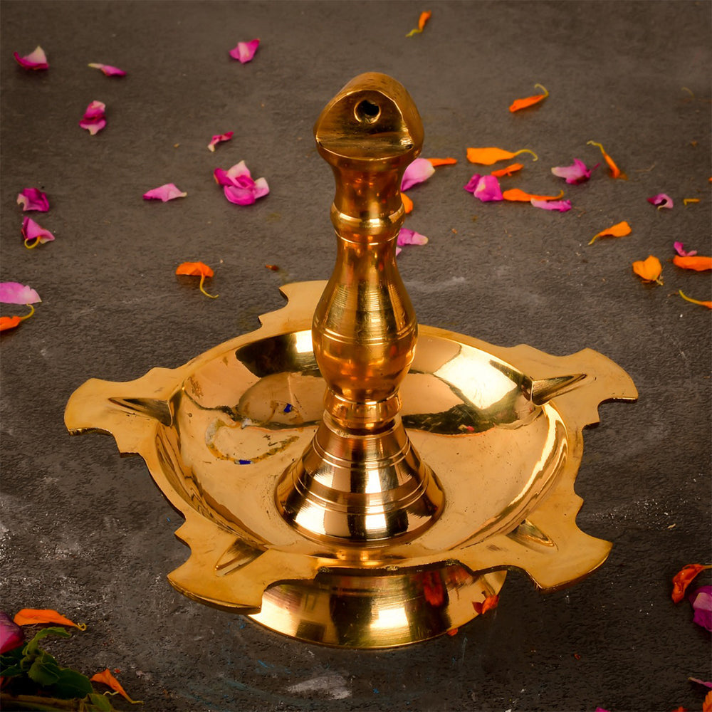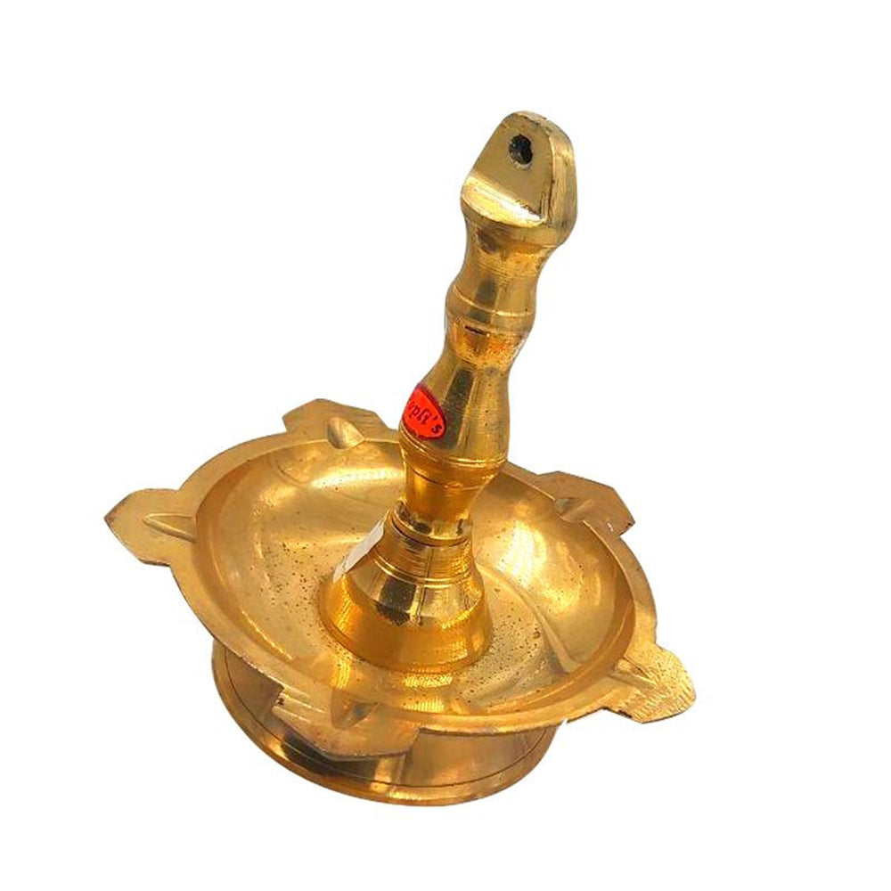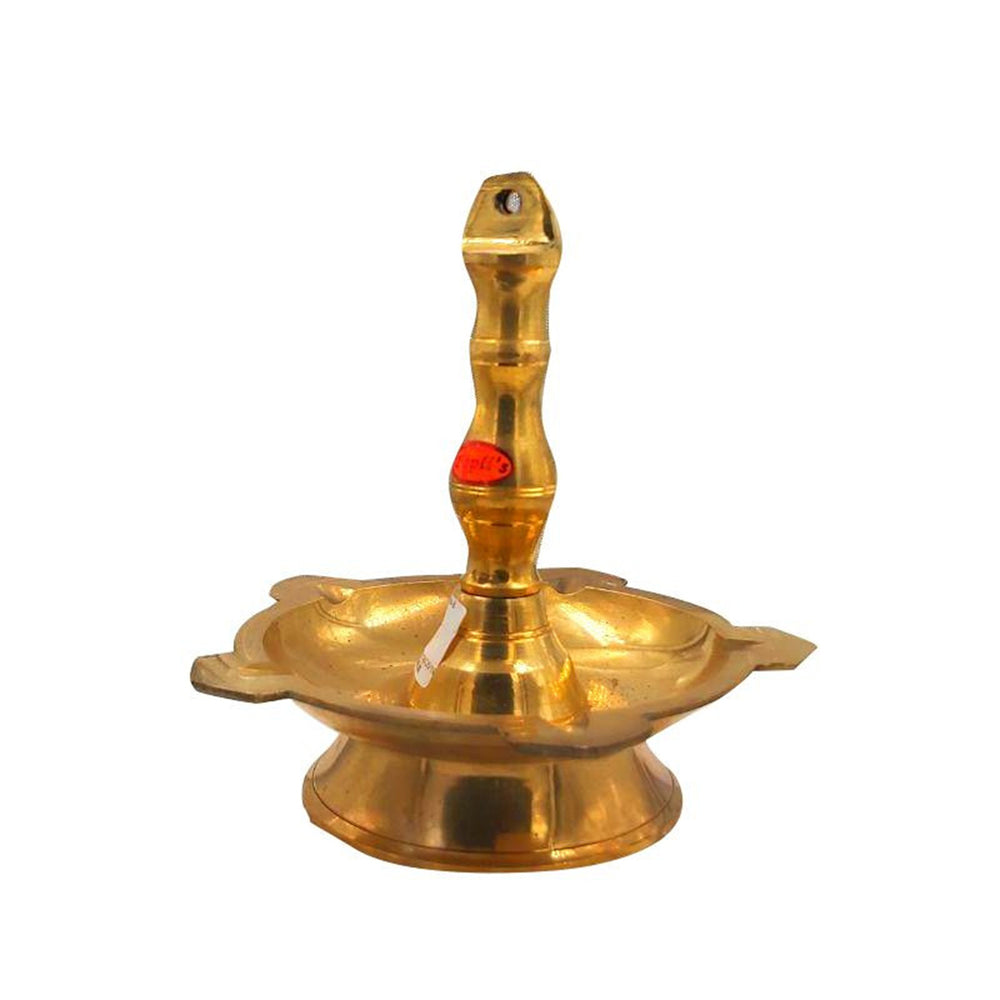 Thongu Vilaku – sacred brass hanging lamp used in temples and home puja rooms. Hung using a chain above the deity, it is filled with oil or ghee, allowing the lamp to burn continuously, providing a serene and spiritual light throughout the night.
