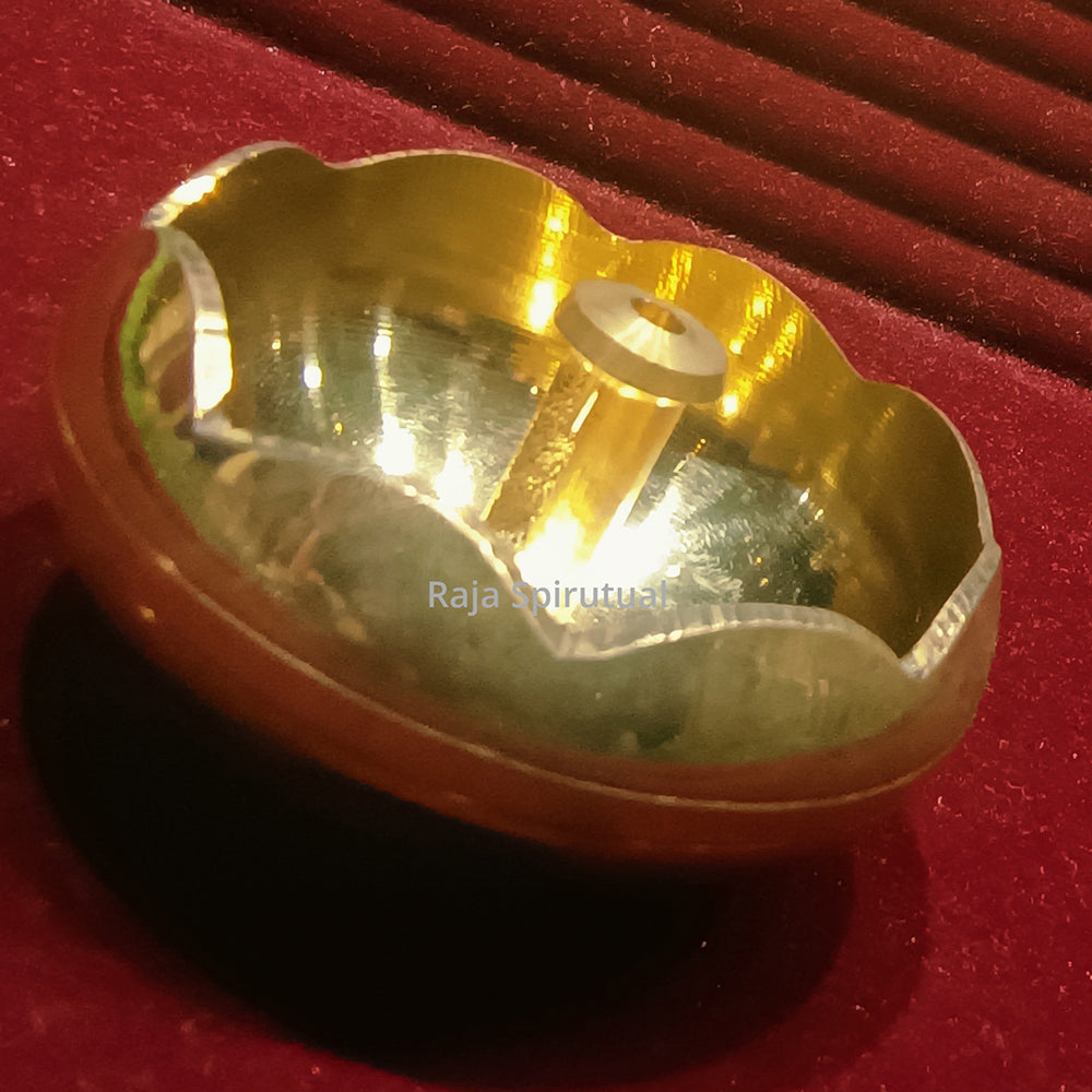 Tomato Shape Vilaku – intricately designed brass lamp shaped like a ripe tomato with smooth, rounded contours. The center portion securely holds a thiri, making it ideal for daily pujai and decorative purposes.