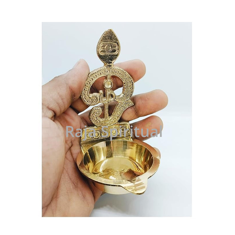 Vel 1 Vilaku – a beautifully crafted single brass diya featuring a detailed Vel design along with an Om symbol at the top. The lamp has a smooth, deep bowl to hold oil and thiri securely, making it perfect for daily Murugan pujai.