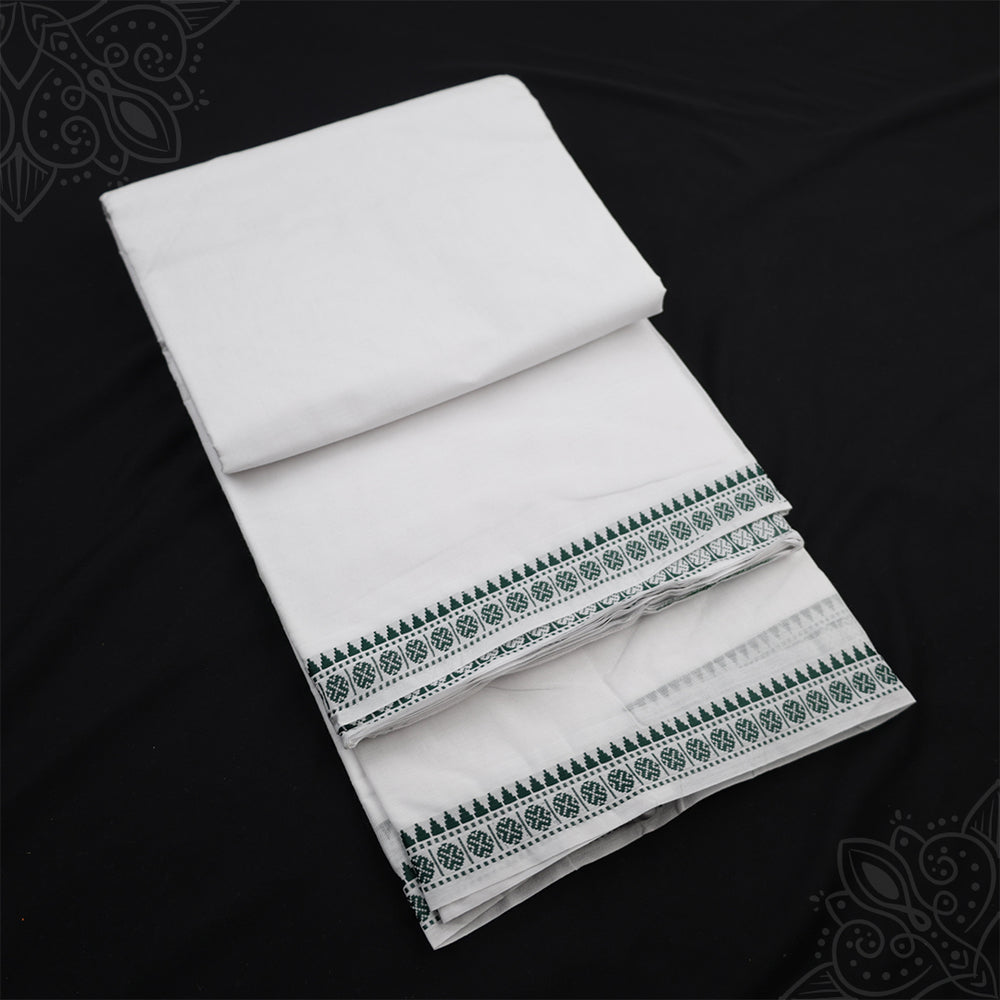 White Vesti Muthupet – a traditional white cotton vesti featuring the elegant Muthupet design, crafted in the classic 9x5 size for a comfortable and dignified drape. Ideal for temple rituals, pooja, and auspicious occasions, this vesti combines simplicity with cultural elegance.