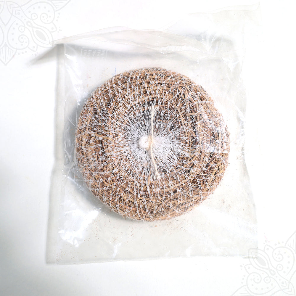 Vettiver Bath Scrub is made from pure vetiver roots (Khus), traditionally used for bathing and purification. The natural fibrous roots act as a gentle body scrub, providing freshness, fragrance, and spiritual cleansing during the bath.
